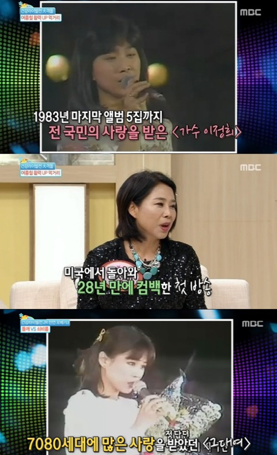 이정희는 올 초에 이어 또 한번 '콘서트 7080'에 출연한다. 오는 22일 밤 11시45분에 방송되는 이 프로그램에서 이정희는 자신의 히트곡 '그대여', '바야야'와 '사랑 밖에 난 몰라'를 이정희 버전으로 불러 눈길을 끌었다. 이외에도 팝송 (donde voy)까지 다양한 장르를 소화하며 건재함을 알린다. 현재 그는 진정한 컴백을 위해 음반작업에 한창이다. 현역 시절 같은 소속사를 통해 맺은 인연을 오랜 세월 간직해 온 선배 가수 이용과 듀엣으로 신곡을 준비 중이다. 이십대 중반의 나이에 떠난 뒤 오랜 세월 동안 무르익은 삶의 성숙함이 담길 그의 신곡에 큰 관심이 모아진다. 강산이 세번 바뀔 정도로 오랜 세월의 간극을 넘어서야 할 복귀 과정. 어려움은 없을까.
