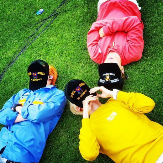 공개된 사진 속에는 잔디밭에 누워 있는 황태지 멤버 황광희, 태양, 지드래곤의 모습이 담겨있다.