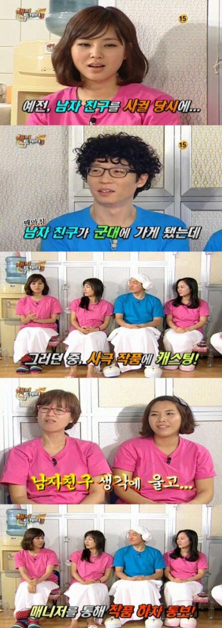 한채아는 "신인시절 사극에 캐스팅돼 사전 준비를 하고 있던 중 남자친구가 군대에 가게되어 속상한 마음에 매일 운 적도 있다. 낙마연습을 하다가도 울고, 시도 때도 없이 울어 매니저를 통해 작품에서 빠지라는 통보를 받았다"고 설명했다.
