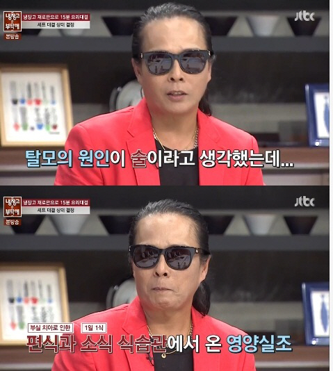 이날 김태원은 자신의 냉장고를 공개하며 "과거에 탈모로 고생을 한 적이 있다"며 "술이 원인이라 생각했는데 영양실조 때문이라고 하더라"고 밝혔다.