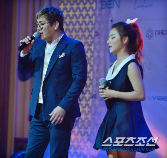 쇼케이스에서 벤이 윤민수와 열창하고 있다.