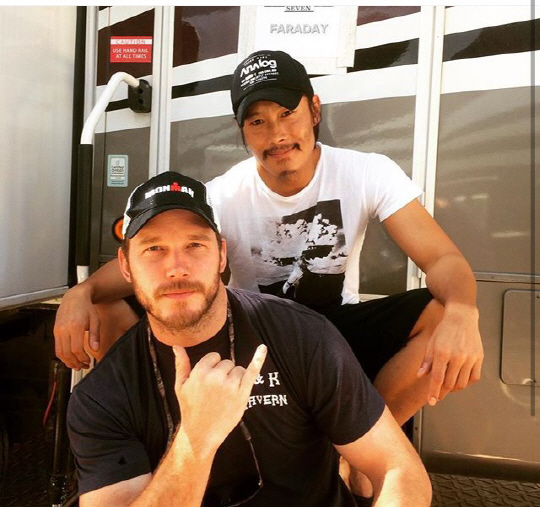 [스포츠조선 이유나 기자] 할리우드 스타 크리스 프랫이 이병헌과 촬영 중인 근황을 공개했다..