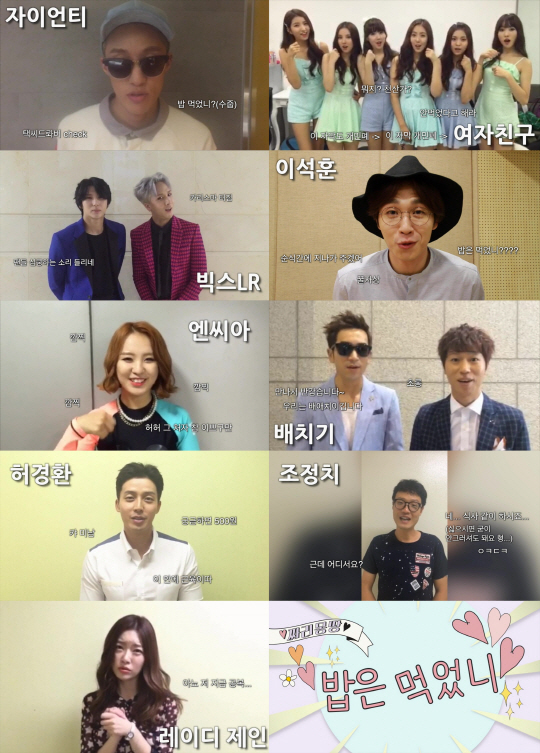 공개된 영상에는 자이언티, 배치기, SG워너비 이석훈, 앤씨아, 여자친구, 허경환, 조정치, 빅스LR, 레이디제인이 차례대로 등장해 "밥은 먹었니"라는 짧은 인사를 전했다. 이들은 영상을 보는 사람들에게 실제로 물어보는 듯한 느낌을 주며 묘한 설렘과 함께 궁금증을 유발시켰다.