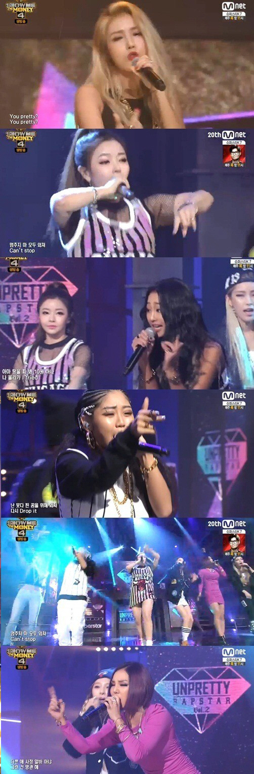 28일 방송된 Mnet '쇼미더머니4'에는 송민호와 베이식의 최후의 1인을 가리기 위해 결승전을 펼치는 모습이 그려졌다. 이날 베이식과 송민호의 결승전 1라운드가 끝난 후 '언프리티 랩스타 시즌2'의 여성 래퍼들이 무대 위에 올랐다.