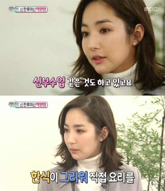 이날 박민영은 중국에서 드라마 촬영 중인 근황을 전했다. 그는 "신부수업 같은 걸 하고 있다. 한식이 먹고 싶으니까 내가 직접 만들어 먹는다"면서, "이러다 한인타운에 '박가네' 차릴 거 같다"고 말하며 털털하게 웃어 보였다.