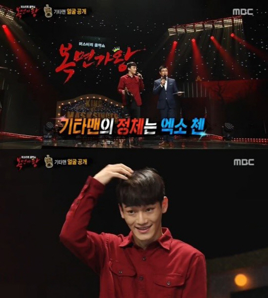 기타맨이 가면을 벗는 순간 관객들의 환호성이 터졌다. 그의 정체는 아이돌그롭 엑소 메인 보컬 첸이었다.