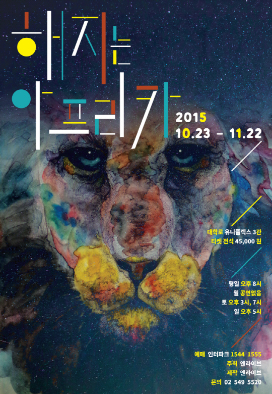 가수 하림이 작사 작곡은 물론 노래하고 연주하는 음악 인형극 '해지는 아프리카'가 오는 10월 23일부터 11월 22일까지 한달 간 대학로 유니플렉스 3관에서 열린다.