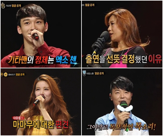 열띤 대결 과정에서 네 명의 복면가수들이 얼굴을 드러냈다. '일편단심 해바라기'는 마마무 솔라, '빛의 전사 샤방스톤'은 감성보컬 김형중, '밤에 피는 장미'는 신효범, '기타맨'은 엑소의 첸이었다. 매 정체가 공개될 때마다 놀라움이 이어졌다. 아이돌부터 베테랑 가수까지 모두가 평등한 무대를 펼쳐다.