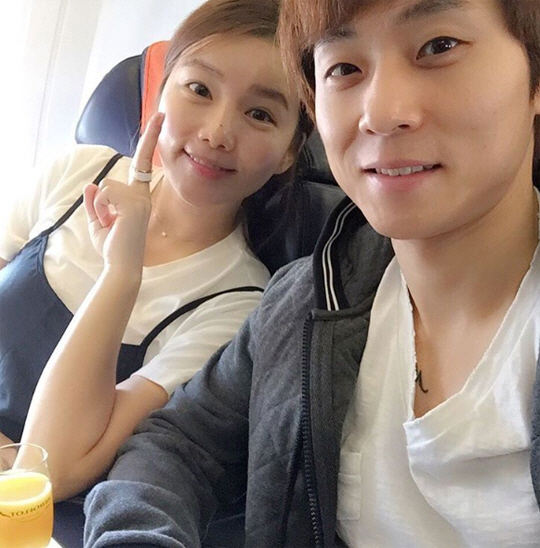 사진은 우나리와 안현수가 비행기 안에서 찍은 셀카, 살짝 머금은 부부의 미소에서 여행의 설레임을 느낄 수 있었다.
