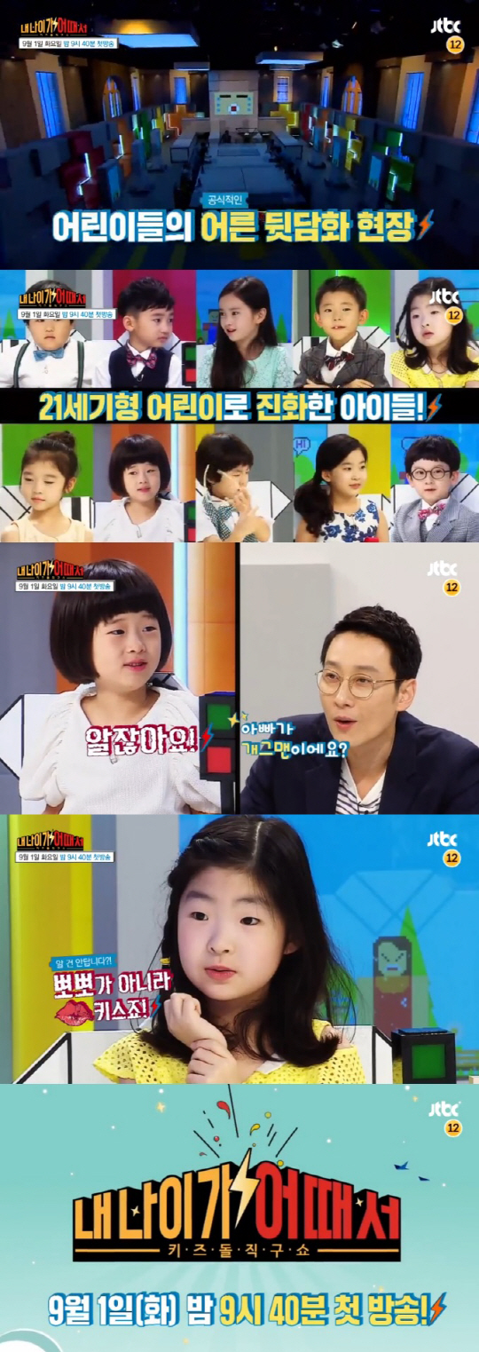 새로운 키즈 예능 JTBC '내 나이가 어때서'가 1일 오후 베일을 벗는다. '내 나이가 어때서'는 7세~9세의 개성만점 어린이들이 어른들의 세상에 거침없는 돌직구를 날리는 어린이 토론 프로그램. 매회 게스트가 고민을 털어놓으면, 아이들은 토론을 통해 순수하고 기발한 방법으로 해결 방안을 찾는다.