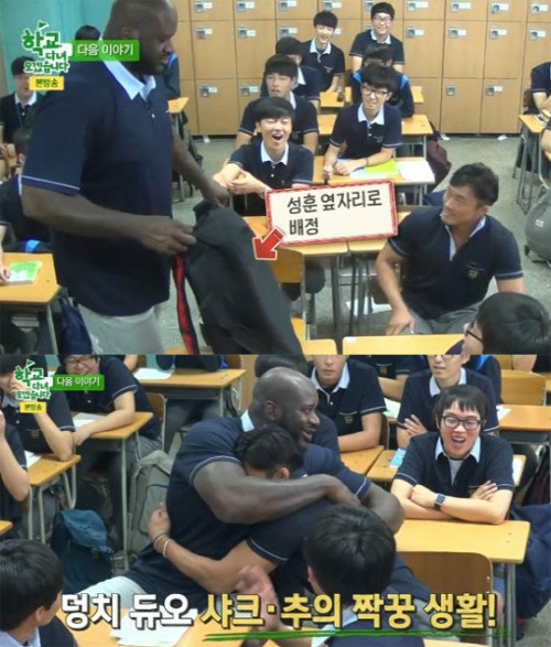 이날 방송 말미에는 NBA 역대 최고 센터 샤킬 오닐의 등장에 학생들은 환호를 내질렀다.