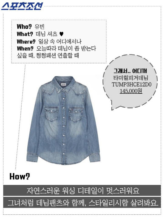 [어디꺼] 유빈 일상 속 스타일리시&빈티지 데님 셔츠?