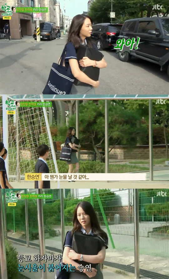 한승연은 학교 정문에서 "와 학교다"라며 감탄사를 쏟아냈다.
