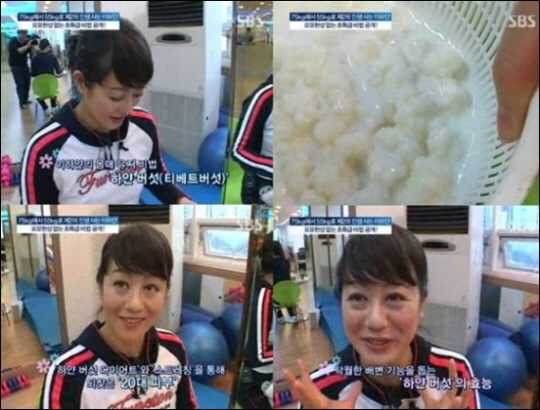 이하얀은 "3개월 만에 20kg를 감량했다"며 티벳버섯과 우유를 섞어먹는 혹독한 식이요법 다이어트 비법을 공개했다.