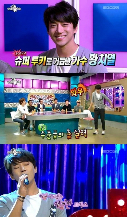 2일 방송된 MBC '황금어장-라디오스타'에는 자타공인 '상남자' 특집으로 황치열이 출연했다. 이날 방송에서 황치열은 '2015년 최고의 슈퍼루키로 거듭난 가수'라는 소개를 받으며 등장해 그 동안 숨겨왔던 끼를 대방출했다.