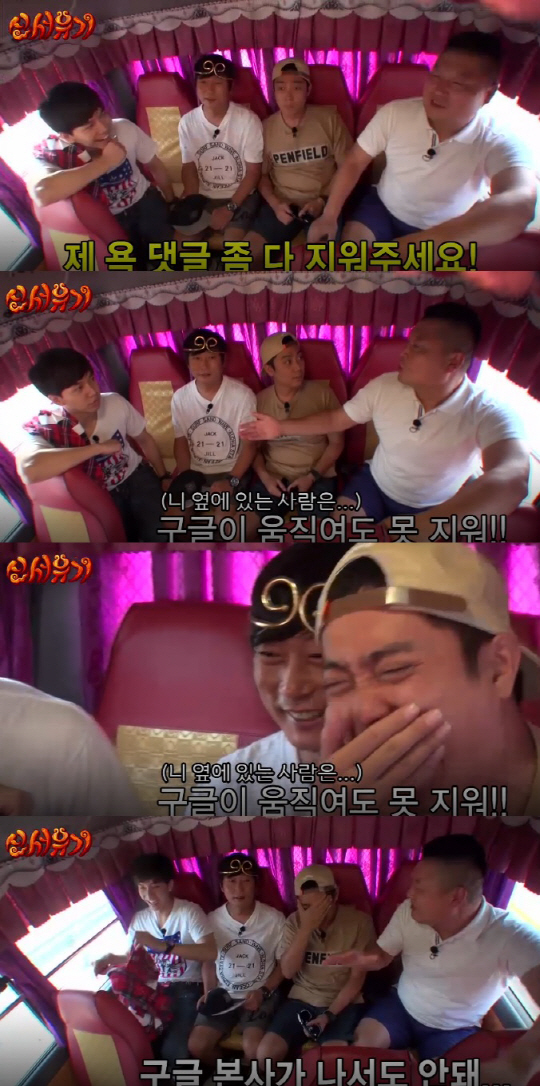 이를 듣던 강호동은 "너 정도는 괜찮다. 니 옆에 있는 사람은(이수근은) 구글 움직여도 못지운다. 구글 본사가 나서도 안된다""고 말해 좌중을 폭소케 했다. 이를 듣던 이수근은 "2년 간 아침에 일어나면 욕을 먹고 시작했다"고 셀프 디스를 시전했다.