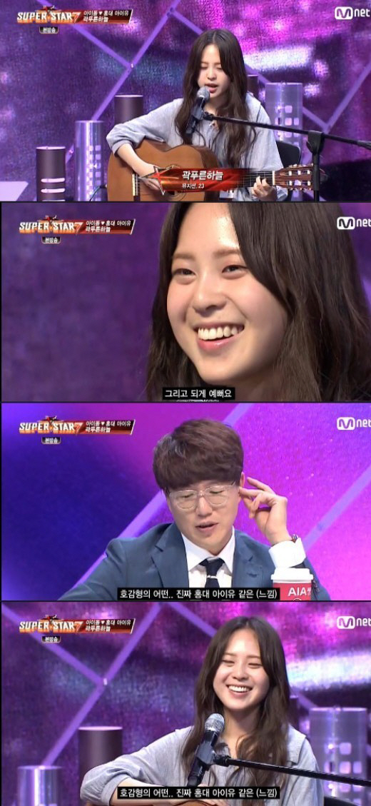 이날 방송에선 '홍대 아이유' 곽푸른하늘이 등장해 눈길을 끌었다. 홍대에서 싱어송라이터로 활동하고 있는 곽푸른하늘은 인디 뮤지션들의 기획 공연이자, 홍대 아이유로 불리는 뮤지션들이 대거 참가해 화제를 모은 '홍대 아이유 결정전'에서 우승을 차지한 인물.