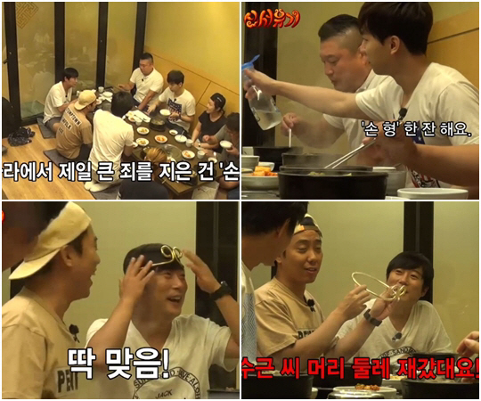 특히 제작진은 머리에 쓰는 '금고아'를 꺼내 들었는데, 이를 본 은지원은 "이거 어디서 만들었는지 안다. 이수근씨 머리 사이즈 재갔다더라"고 말해 폭소를 유발했다. 그 말대로 금고아는 이수근의 머리에 딱 맞았다.