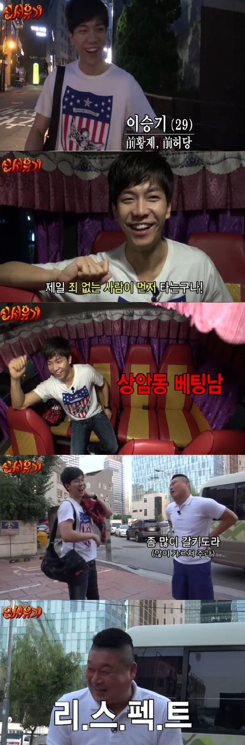 이승기는 지난 2013년 불법 스포츠 도박에 연루돼 징역 6월, 집행유예 1년을 선고를 받고 자숙하다 '신서유기'를 통해 복귀해 우려와 비난을 한몸에 받고 있는 이수근의 저격수 역할을 톡톡히 했다. 멤버들을 데리러 가는 버스에 가장 먼저 탑승한 그는 "딱 보니 가장 죄 없는 사람이 먼저 타는 것 같다. 부동의 4번은 정해져있다"고 말했다. 이어 그는 이수근을 "상암동 베팅남"이라고 부르며 폭소를 자아냈다. 또한 1박2일 이후 결혼과 이혼 소식을 전한 은지원에게는 "여의도 이혼남"이라는 타이틀까지 붙였다.