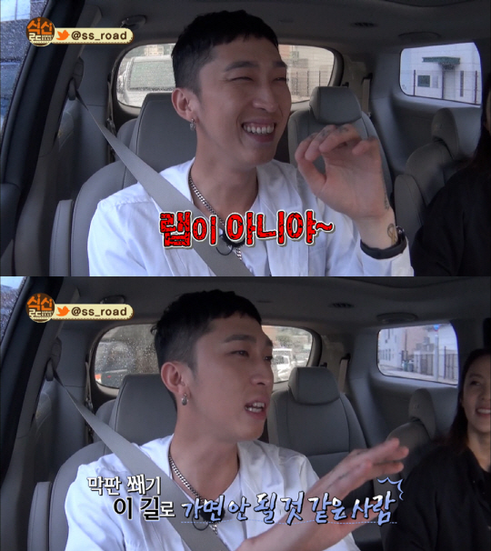 5일 방송될 K STAR '식신로드'에서는 예능 대세로 떠오른 슬리피가 출연해 먹방을 선보인다. 앞서 진행된 녹화에서 슬리피는 맛집으로 이동하는 차 안에서 토크를 이어나가던 중 정준하의 랩 실력을 평가해 달라는 네티즌의 질문을 받았다. 이에 정준하는 특유의 코창력 랩을 선보이며 "솔직하게 해줘. 나는 랩에 대한 꿈은 없으니 괜찮다"고 속마음을 전했다. 그러나 슬리피는 "점수를 매겨야해요?"라며 잠시 난감해 하더니 70점이라는 후한 점수를 줬다.