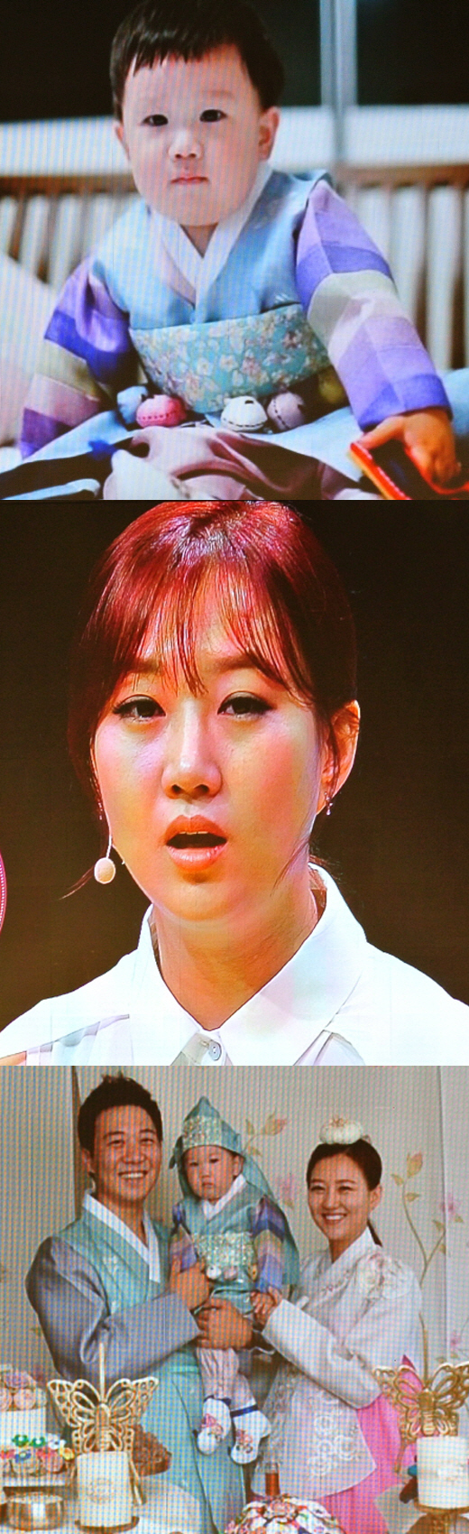장윤정이 공개한 도연우 군의 얼굴은 엄마 장윤정과 아빠 도경완을 꼭 빼닮은 모습.