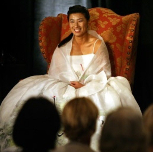 박세리는 과거 자신의 미니홈피 계정을 통해 순백의 드레스를 입은 모습을 공개했다.