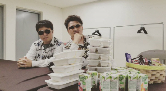 [스포츠조선 조윤선 기자] 오랜만에 뭉친 힙합듀오 형돈이와 대준이가 대기실 셀카를 공개했다.