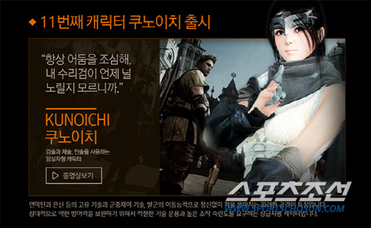 지난 7월 정식 오픈과 함께 신규 사막 지역 발렌시아를 공개한 검은사막은 11번째 캐릭터 쿠노이치를 업데이트했다. 닌자 콘셉트의 이 캐릭터는 소검을 사용하지만 2개의 보조무기로 기존 캐릭터들과 다른 모습을 보여주면서 관심을 받았다.