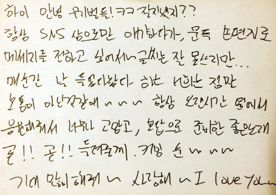 한편 자필편지를 공개한 블락비 박경은 'tvN 뇌섹시대-문제적남자'의 고정 멤버로 합류하며 첫 방송을 통해 새로운 매력을 드러낸 바 있다.