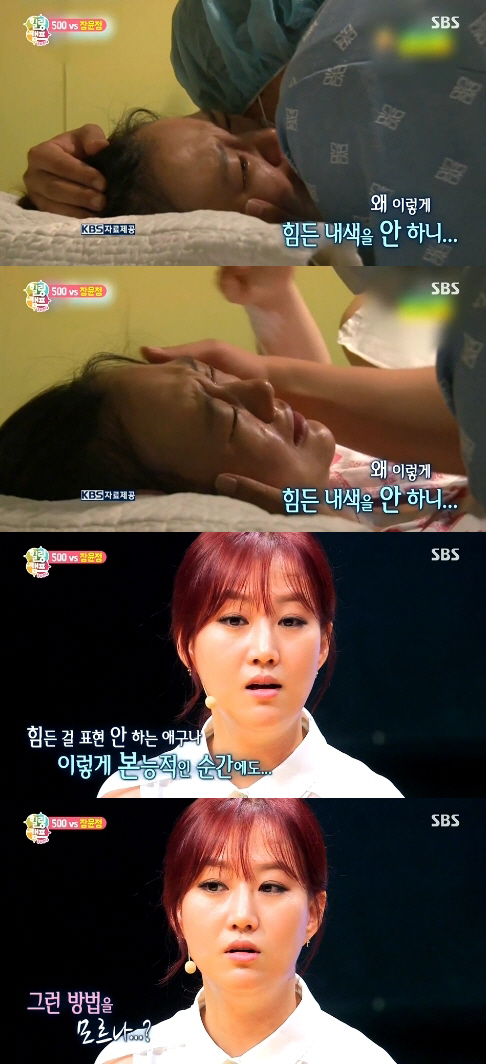 장윤정은 "출산할 때 아이가 밖으로 나오려는 움직임이 느껴진다. 내가 아이를 빨리 낳아줘야 한다는 생각부터 모성애가 시작되는 것 같다. 1초라도 빨리 낳아줘야 아이가 덜 힘들다는 생각으로 온몸의 힘을 다해 세 번 힘을 줬다. 그런데 수간호사가 '본인도 처음인데 우리에게 의지도 하지 왜 그렇게 아무렇지 않은척 하냐'면서 우시더라. 내가 또 너무 그랬나 싶었다"며 아픔을 꾹 참는 것이 습관이 된 자신의 일화를 털어놨다. <스포츠조선닷컴>