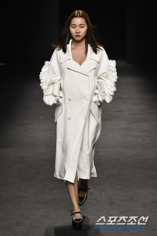 옷에서 디자인 요소를 찾으라고 하면 보통 클래식 슈트와 코트가 아닌 이상, 싱글과 더블의 여밈 형태로 디자인적 요소를 찾지 않습니다. 문제가 된 두 의상에서 오버사이즈 실루엣과 소매에 똑같은 형태와 길이로 들어간 프릴이 디자인 요소의 핵심이며 아르케 15FW 컬렉션의 메인 디테일입니다..