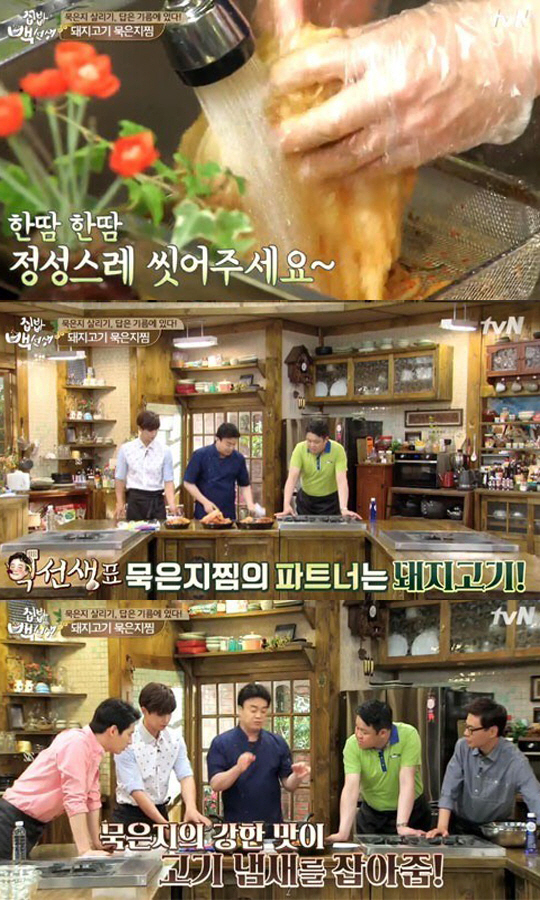 백종원은 8일 케이블 방송 tvN '집밥 백선생'에서 돼지고기 묵은지찜의 레시피를 공개했다.