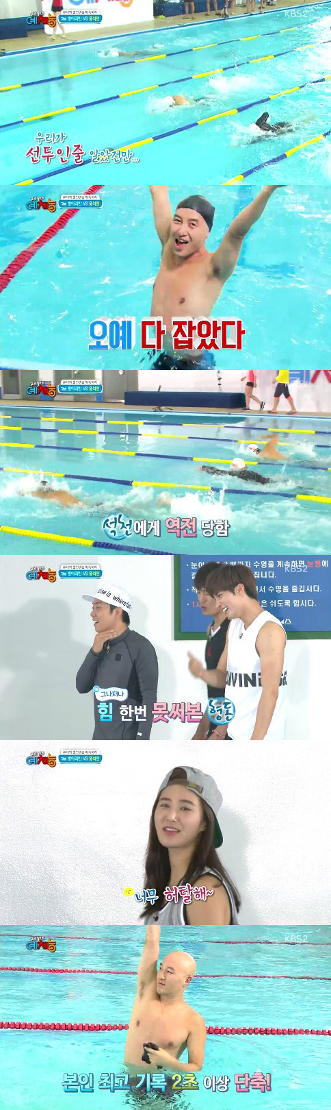 결국 홍석천은 일찌감치 결승선에 도달해 병아리반 멤버들을 기다렸다. 이후 강호동은 홍석천의 수영실력에 대해 "우리랑 차원이 다르다"고 감탄했고, 유리는 "허탈하다"고 밝혔다. <스포츠조선닷컴>