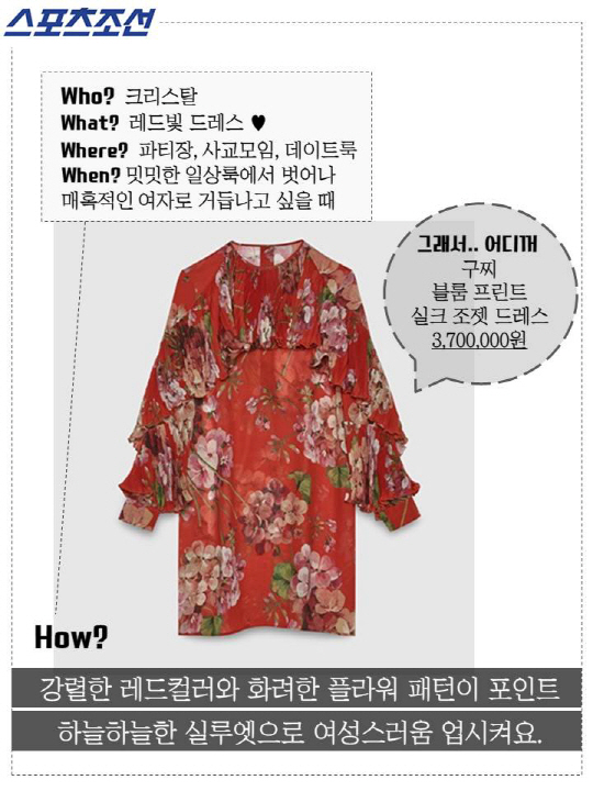 #어디꺼 #스포츠조선 #크리스탈 #드레스 #시크소녀의_레드&플라워란_이런것 #표정은시크해 #구찌