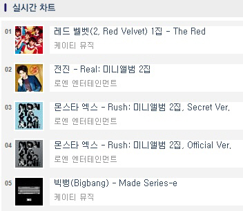 몬스타엑스의 두 번째 미니앨범 'RUSH(러쉬)'는 발매와 동시에 한터차트 3-4위 진입하며 눈길을 끌었다. 소속사측은 "이번 앨범 'RUSH(러쉬)'에 대한 국내외 반응이 예사롭지 않다. 한터차트에서도 기라성 같은 K POP 스타들을 넘어 3-4위를 고수하고 있으며, 각종 커뮤니티에서 게시물들이 폭발적인 조회수를 기록하는 등 반응을 얻고있다.팬 여러분께 진심으로 감사드리고 앞으로 더욱 노력하는 모습을 보여드릴 것"이라고 전했다. 또한 지난 9일 진행된 몬스타엑스 웨이보 어택은 시나웨이보 메인 페이지에 게재되며 중국에서의 뜨거운 인기를 반증했다.