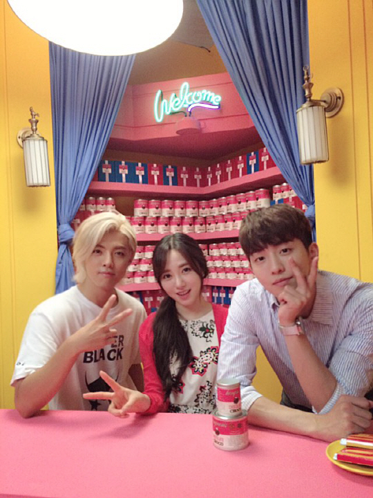 강남은 10일 자신의 인스타그램에 "오늘 낮 12시 Chocolate 나와요~~ 많아 많이 들어주세요!!^^ 주혁이랑 민아 Thank U~ 산이형 짱^^" 라는 문구와 함께 사진을 게재했다.