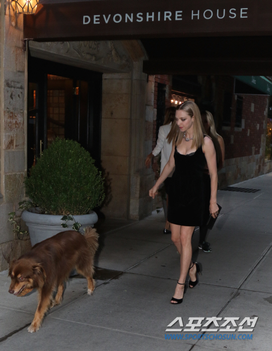 할리우드에서도 소문난 애견인인 아만다 사이프리드는 반려견 핀 산책을 위해 드레스를 입고 거리에 나섰다. 아만다 사이프리드는 이날 저녁에 열리는 뉴욕 패션 위크 이벤트 참석을 위해 몸매가 드러나는 블랙 초미니드레스와 하이힐을 착용한 모습. 산책과는 거리가 먼 스타일이지만 아만다 사이프리드는 반려견 산책을 잊지 않고 직접 챙기는 남다른 애견 사랑을 드러냈다.