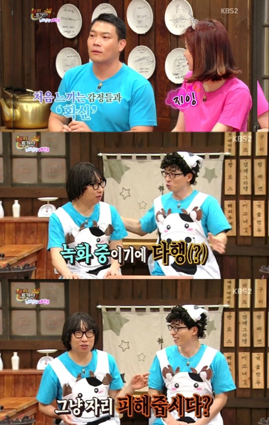 '해피투게더' 유재석이 김새롬-이찬오 부부의 뜨거운 눈빛에 당황했다.