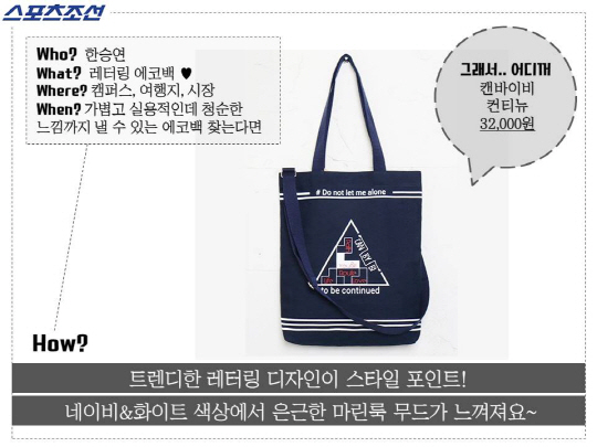 #어디꺼 #스포츠조선 #한승연 #카라 #에코백 #승연언니는_왜때문에_그렇게_교복과_위화감이없죠? #그녀의나이는어디로 #캔바이비