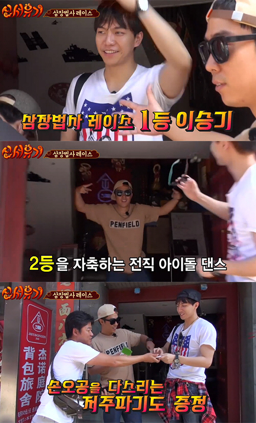 이날 은지원과 연합한 이승기는 택시를 타고 편안하게 숙소에 도착, 결승선을 1등으로 통과했다.