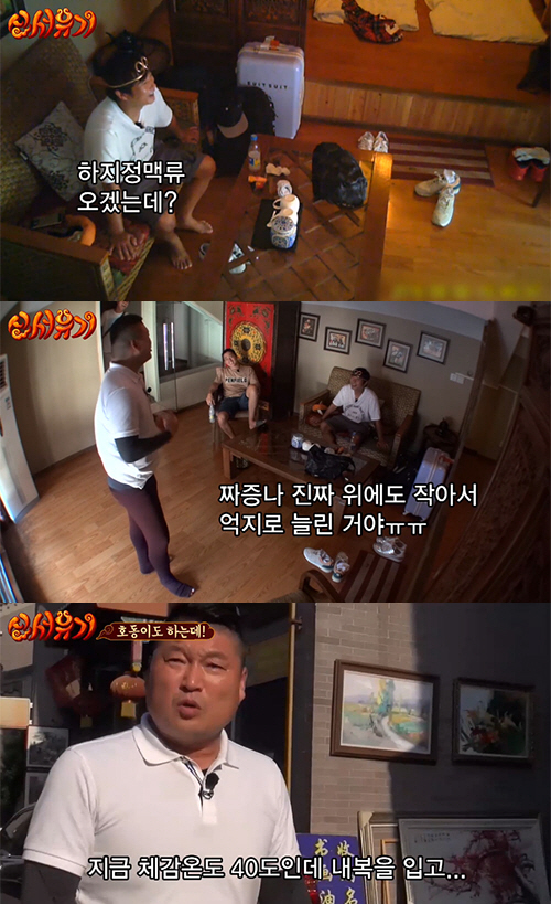 몸에 맞지 않는 히트텍을 강제로 늘려서 입은 강호동은 "짜증 난다. 진짜 위에도 작아서 억지로 입었다"고 불평했다. 이를 본 이수근은 "발레 선수 같다"며 "하지 정맥류가 올 거 같다"고 말해 웃음을 자아냈다.