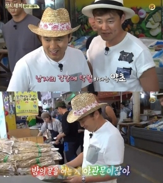 '삼시세끼 정선편' 옥순봉 2인자 김광규는 '남자에게 탁월하다'는 이야기에 유독 야관문을 시장에서 직접 구입, 물로 우려내 이를 수시로 마신다.