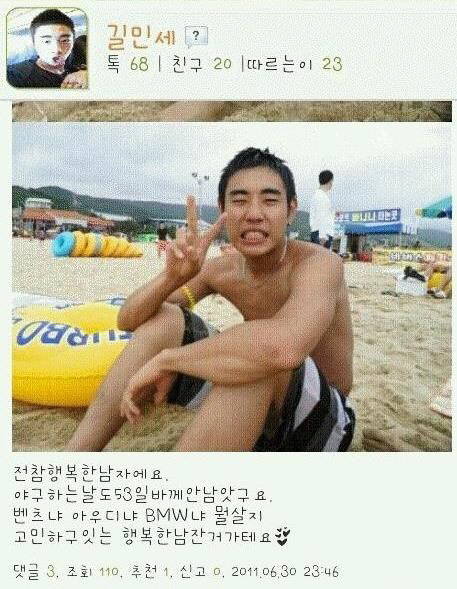 당시 길민세는 "전 참 행복한 남자에요. 야구하는 날도 53일밖에 안 남았구요. 벤츠냐 아우디냐 BMW냐 뭘 살지 고민하고 있는 행복한 남잔 거 같아요"라는 글과 함께 브이 포즈를 취하고 있는 사진을 게재했다.