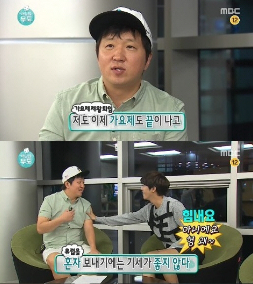 정형돈은 사연을 소개하기 전 "가요제도 끝나고 물이 빠지는 상태라 혼자 (독일에)에 보내기엔 기세가 좋지 않다라고 제작진이 판단했다 보다"라며 셀프 디스를 했다.