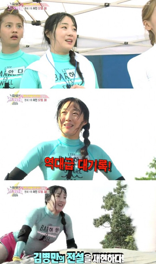 특히 허민의 완주기록은 57초30. 기록을 본 MC 이창명은 "정말 대단하다. 이 기록은 김병만의 기록과 비슷하다"며 감탄했다.