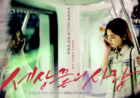 영화 '세상끝의 사랑'은 자신의 사랑을 놓치고 싶지 않은 여자 자영(한은정), 과거의 상처를 품고 사는 아이 유진(공예지), 두 여자를 사랑하게 된 남자 동하(조동혁), 서로 어긋난 사랑으로 인해 파국을 맞는 세 사람의 이야기를 그린 작품으로 매 작품마다 인간의 내면을 날카롭게 파고드는 탁월한 연출로 화제를 모아 온 김인식 감독의 신작으로 더욱 뜨거운 관심을 모으고 있다.
