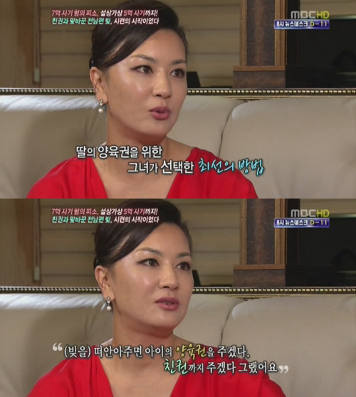 이어 김혜선은 "남편이 빚을 떠안아주면 양육권을 주겠다, 친권까지 주겠다고 했다. 아이를 무조건 내가 키워야겠다는 생각에 남편 빚을 떠안고 두 딸을 데려왔다"라고 고백했다.