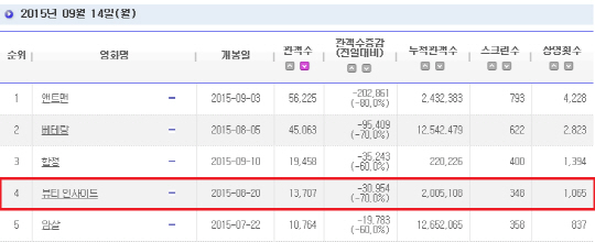 '암살' '베테랑' 등 누적 관객수 1000만 명을 돌파한 액션 영화들 사이 관객들의 감성을 자극하는 독보적인 멜로 영화로 주목 받은 '뷰티 인사이드'는 14일 누적 관객수 200만이라는 기록을 세웠다,