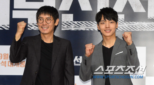 배우 설경구와 여진구가 15일 건대 롯데시네마에서 열린 영화 '서부전선'의 언론시사회에서 포토타임을 갖고있다.