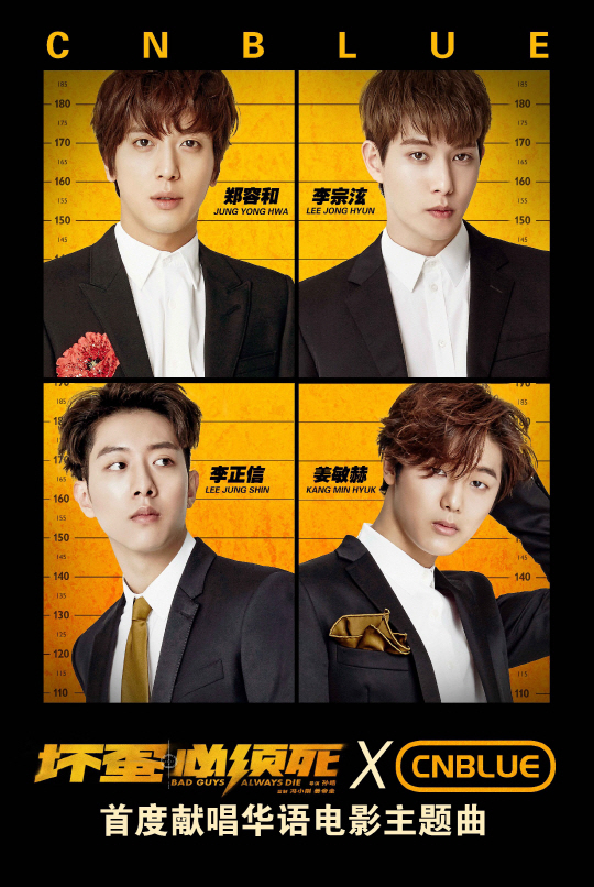 밴드 씨엔블루(정용화 이종현 강민혁 이정신)가 한중 합작 영화 '나쁜 놈은 반드시 죽는다'의 주제곡을 부른다.